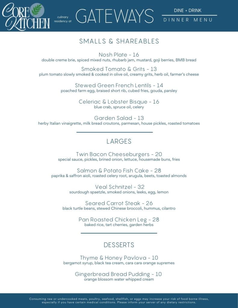 Join us at Gateways Dine + Drink for dinner Thursday – Saturday, 5:00-9:30 pm.