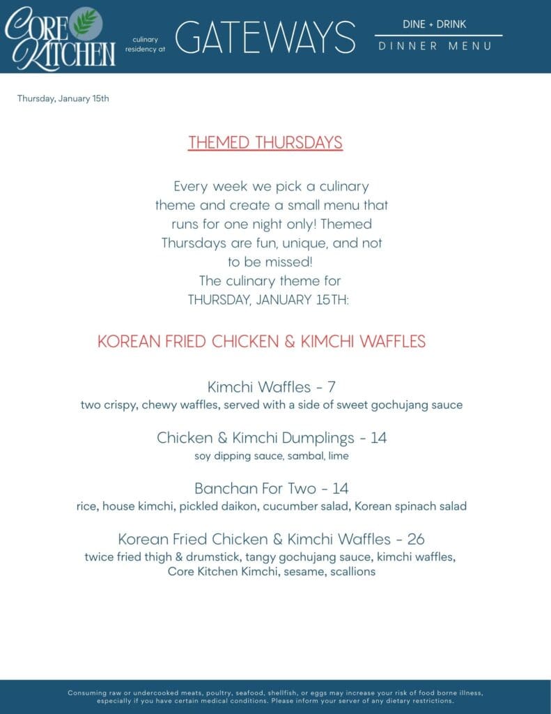 Each theme is available one night only, offering guests something new to discover and delight their palette. See this week’s menu below.
